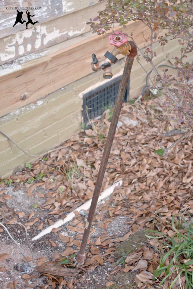 Last year, I replaced our old, broken, 1-inch-from-the-ground outside water spigot with a much taller pipe for easy filling of buckets and general access. I’m considering replacing it with a shorter one next summer; but, for now, I’m worried about it freezing when our crazy Georgia weather decides it’s finally time to get way below freezing. Last week it was in the seventies. As I’m writing, it’s 30 degrees outside. You can see in the photo that we are still in the process of scraping and painting the exterior of our old house. There will be plenty of posts about that later as we finish up this two-year old process.