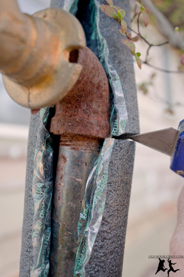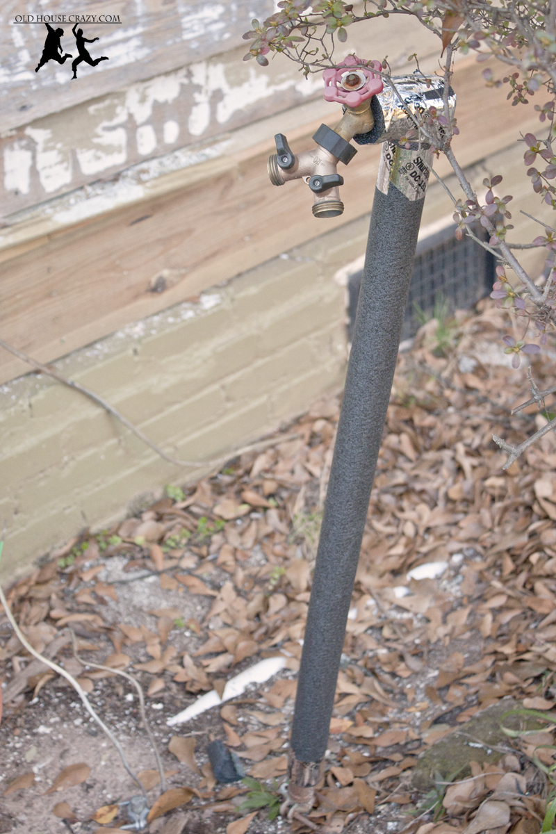 I’m not completely convinced that this foam blanket will protect this pipe forever. I’m nervous to have such a long pipe exposed above ground during the few hard freezes that we get. That’s why I’m thinking of replacing it with a shorter pipe in the future.