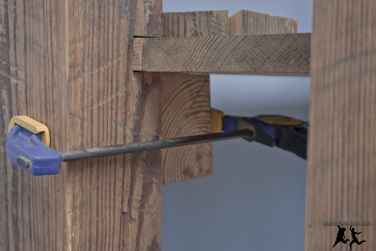 After the glue dried, I removed the clamps and the shelf had a heck of a lot more stability. It doesn’t sway from side to side at all now.