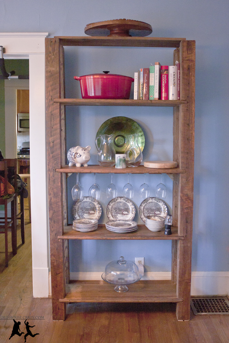 The heartpine shelf I built for our dining room ended up being seven feet tall. This didn’t sound all that tall until I realized that it also weighed 200+ pounds. That much height and weight would do some damage if it came crashing down on our floors, so I set out to make this sucker as stable as possible.