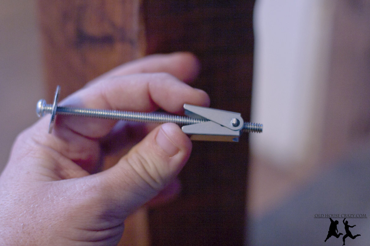 Once the bolt is through the hole, it expands like this and can be tightened as much as needed. It’ll hold onto that wall and keep your large shelves or heavy photos/mirrors/etc from crashing down.