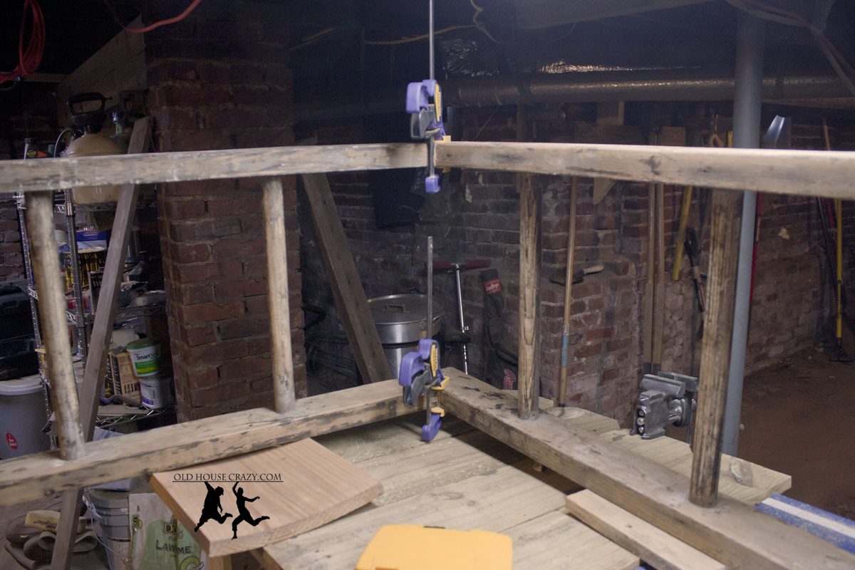The clamps in the photo above are holding the pieces in place so that I could pre drill holes and insert two 3-inch screws per piece to hold the L together.