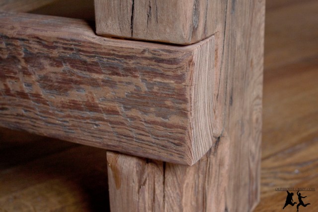 After sanding with 32, 60, 120, and 220 grit sand paper, the 100-year-old beams have an incredible patina and are smooth to the touch – no splinters.