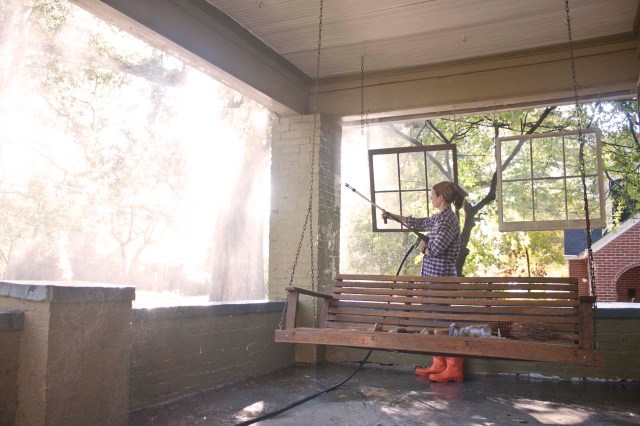 When Robby and I started the job of improving and painting the entire exterior of the house, we were partially motivated by the feelings we had while sitting on the front porch. They were love-hate feelings: we loved the space and function of the porch, but hated the thick, peeling layers of ugly paint that stared at us while we kicked back. During the warmer months (about 9 months out of the year in Atlanta), we frequently spend more waking hours outside on the porch than inside, so the porch was high on the list of spaces we wanted to address. Since starting this process, we’ve received many compliments from folks in the neighborhood about the increased curb appeal & value & blah blah blah, but truthfully we did this work much more for our own enjoyment than for anything else.