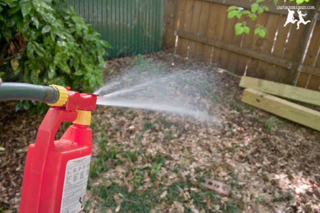 After giving the dogs the Comfortis, they still had fleas that they were bringing in from the yard. Even though the fleas die after biting the dogs, they bother the dogs every time they bite. Winnie just wouldn’t stop scratching. To solve the problem of yard fleas, I went to the hardware store and picked up a bottle of flea killer for the yard. It’s a handy hose-end spray bottle that mixes with the hose water as you spray the yard. Very fancy.