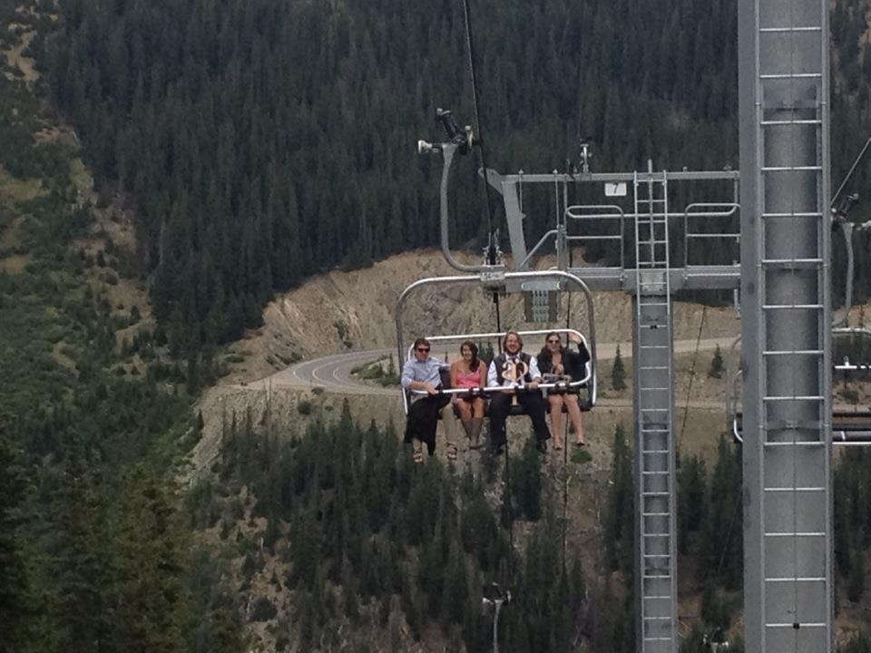 Our friends Paralee and Aaron got married last week in one of the coolest wedding ceremonies we’ve had the privilege of attending. They literally got married on a mountain, inviting their guests to ride the ski lift at Arapahoe Basin, Colorado to the ceremony at the mountain lodge. For the procession, everyone watched as Paralee and her father rode the ski lift to the top and then walked down the aisle. They served keg after keg of Aaron’s homebrew at the reception, along with Elk medallions and squash bisque. It was super cool.
