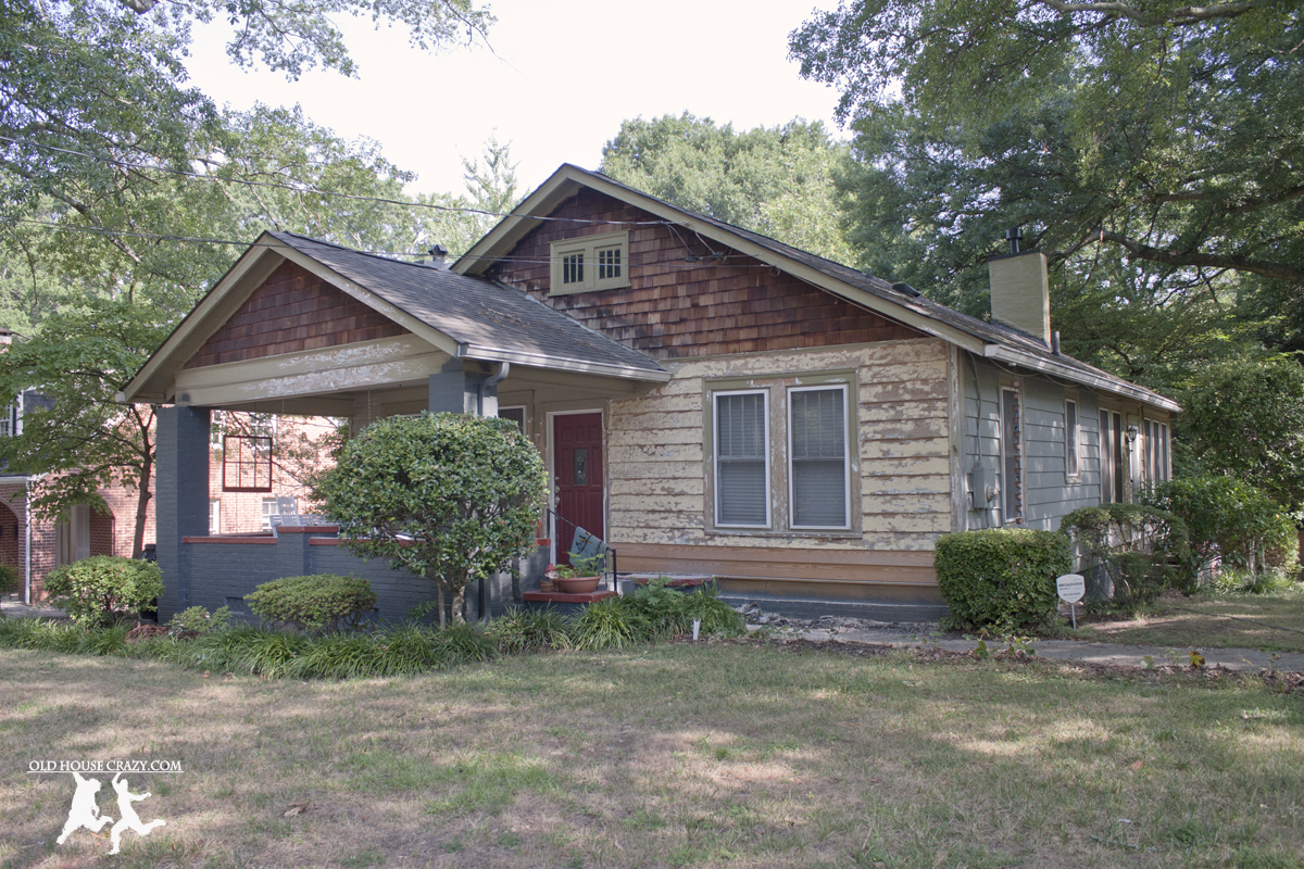 This may seem like a lot of work. It is. You may not want to spend this much time on every single wall of your house. I didn’t. I’m spending much more time on the front of my house, fixing every imperfection, because we spend a lot more time out front on the porch. It’s also the wall visitors see the most. On the boards that are ten feet off the ground in the back corner where only the dogs see while they’re pooping, I didn’t fix all the imperfections. Take the extra time where it’s needed. Spend less where it isn’t. The photo below shows the front wall after it’s been fully covered with putty. It’s a lot of putty. If you’ve got questions about this post or suggestions for the blog, email us at oldhousecrazy@gmail.com or leave a comment below. Thanks for reading. -Robby