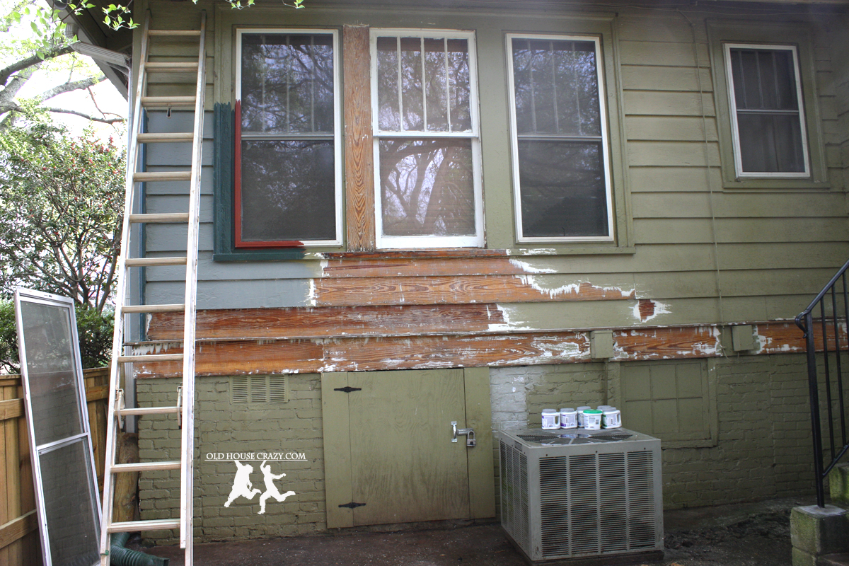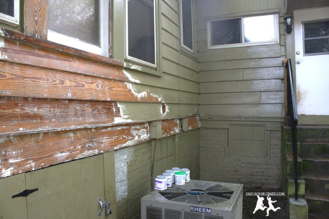The first photo shows how much scraping I finished during my first spring break spent scraping. I foolishly thought I’d be able to scrape and paint my whole house during that week-long vacation. It’s seven whole days, right? You can also see where we tested out our paint colors on the left side.