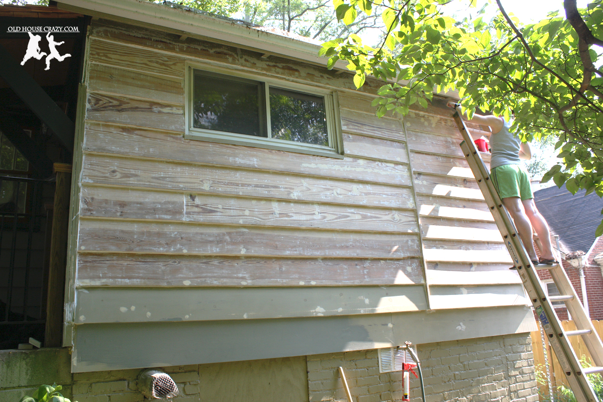 Here’s the far side of the house, fully scraped. You can see that I didn’t scrape the top two boards. That high up, it’s difficult to get the proper leverage with the hand scraper.