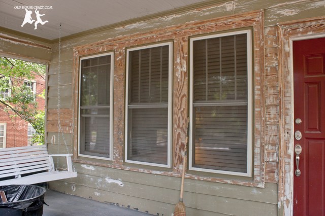 Here’s a closer shot of the front porch, ready for paint.