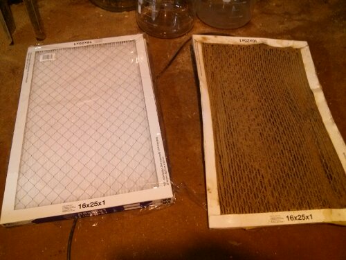 I had forgotten to change our HVAC air filter for way too many months, so this is what ours looked like when I pulled it out today. We had been having problems with our heater during the last month or so of the winter, in that it was taking way too long to heat our little house. I thought the worst and was expecting some expensive repair. Turns out, the filter was so clogged that it was inhibiting the airflow and making us cold during the nights. Change your filters folks. It’s time.