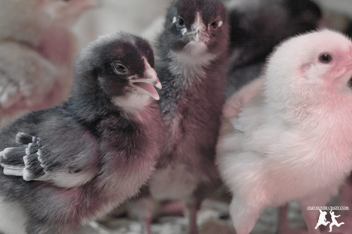 Ideal Poultry gives you recommendations on their site of how to get ready for the baby chicks. There is also a huge amount of information on the web about how to prepare for your own chicks. I purchased a couple of books as well. If you’re interested in starting chicks, read up. There’s a lot that you can do wrong, but it’s really not that complicated to get it right. From here, I’ll explain what we did to get ready and show you more adorable photos of baby chicks.
