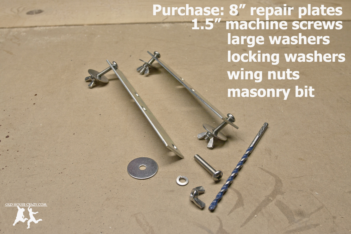 I started by purchasing the following stainless steel hardware: 2-8″ repair plates, 2-1.5″ machine screws with large washers, locking washers, and wing nuts. Stainless is expensive, but I didn’t want any metal coatings leaching into my food. I also purchased a masonry bit that matched the diameter of the screws. In total, I spent 21.08 at the hardware store.