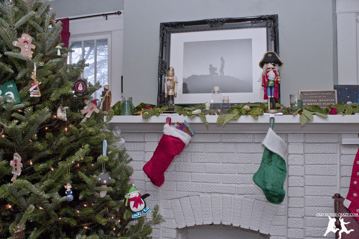 Here’s what the finished mantle in our living room looks like. We’re both very pleased, and now finally have an appreciation for the mighty Croton that lives in our backyard! Some holly sprigs or even some poinsetta trimmings could be part of your non-traditional holiday garland. Just be sure to check anything that you cut from the yard for spiders or other living hitchhikers that would love to make your house their home.