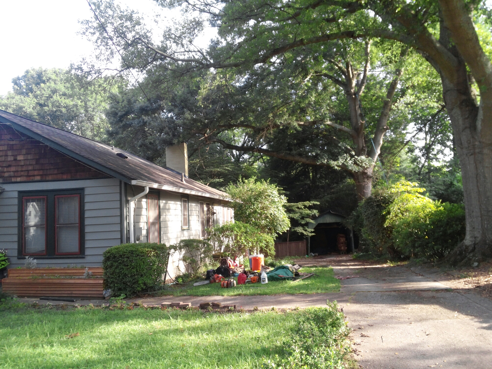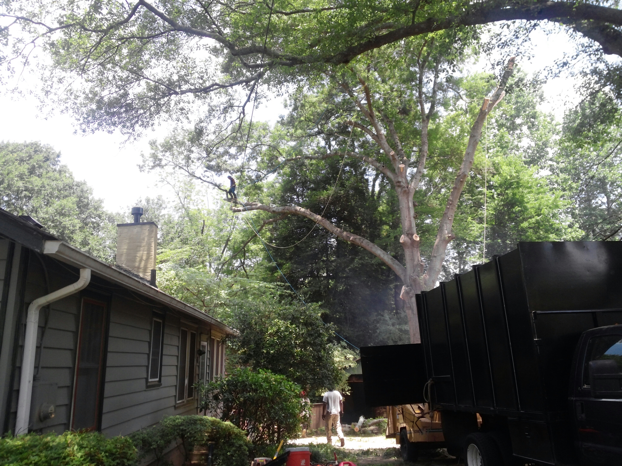 Our neighbor has been really nervous about a giant water oak between our houses for a few years now. It has dropped several limbs on her house and caused a fair amount of damage. It’s the one at the bottom of the driveway in the photo below.