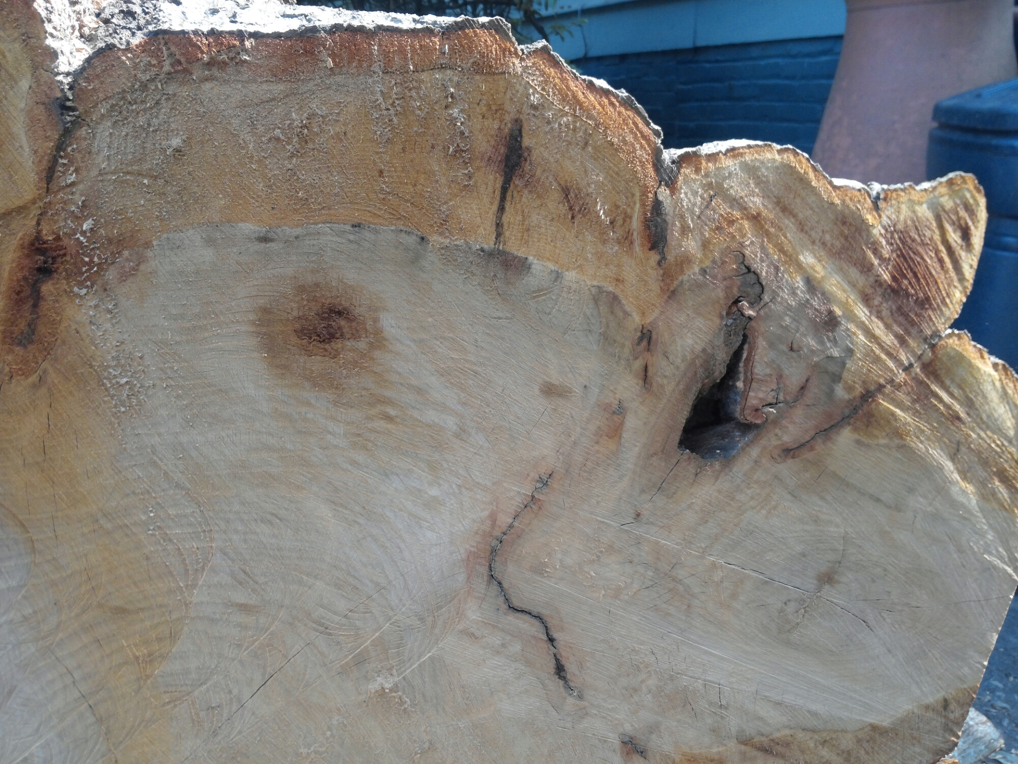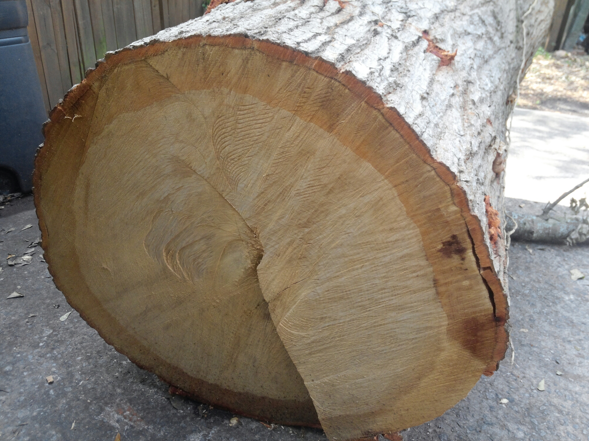 Long story short, we just hate to see so much beautiful wood, in the red oak family, go to the dump. We asked them to drop a massive chunk in our driveway to make into coffee tables.
